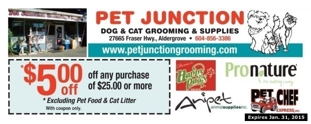 Coupons BC : Langley Coupons : Shopping & Services Coupons : $5.00 Off at Pet Junction