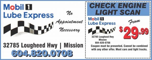 Coupons BC : Mission Coupons : Auto Repair Coupons : Check Engine Light Scan $29.99 at Mobil 1 Lube Express - Mission